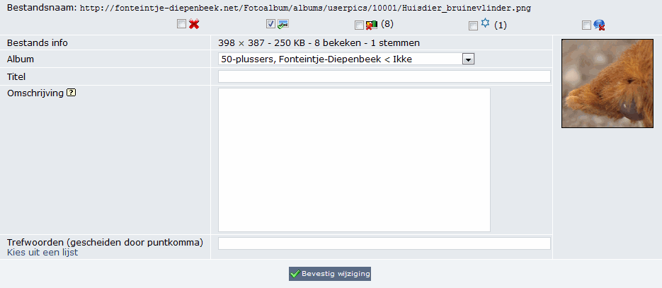 Note: If the first method is used and the image later deleted, the thumbnail will also be deleted and the default Coppermine thumbnails will be displayed, instead.